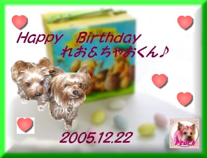 今月はちゃお君、れお君もBDだねd(^-^) クリスマスもあるし、美味しいの一杯食べて寒い冬を乗り切ってくださいねェ〜ヾ(@~▽~@)ノ |