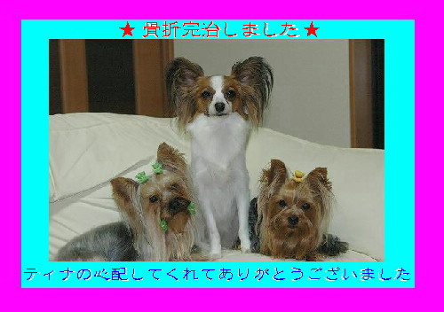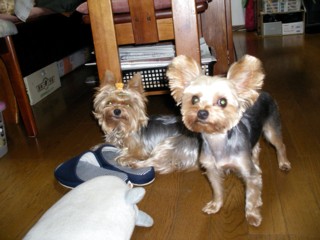 あんずさんはじめまして〜(*^-^*) yukkoの妹のみゆです♪ 親戚探しのサイトでかん太君と親戚と分かった時うちのネット接続ってまだ常時接続じゃなくてアナログ回線だったんで、ゆっくりとHPにご挨拶に行ったり出来なかったんですよね^_^; そんなこんなでズルズルと挨拶に行きそびれていました(汗) で、プリさんとこや他ののBBSでお名前を見かけていたんですけど、またまたお話に入っていきそびれてましたの!シャイだから〜(嘘) それがあんずさんの方から遊びに来ていただけるなんて嬉しい〜 親戚探しではれお&ちゃおは兄弟だから一緒と思って、れおしか登録してないんですけどこのプラザーズ、プリさんとこのノンノちゃんともはとこなんですよん! 素敵なお洋服を作れるお2人のわんちゃん達と それぞれはとこだなんて感激です〜。・゚・(ノ∀`)・゚・。